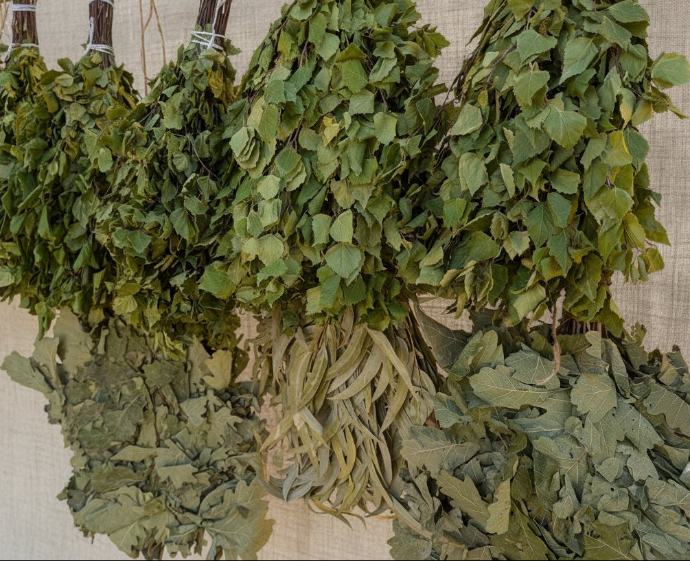 Whisking with whisks is a traditional sauna practice in which the body is warmed and massaged with specially prepared whisks. This can be done either on yourself or on another person.
